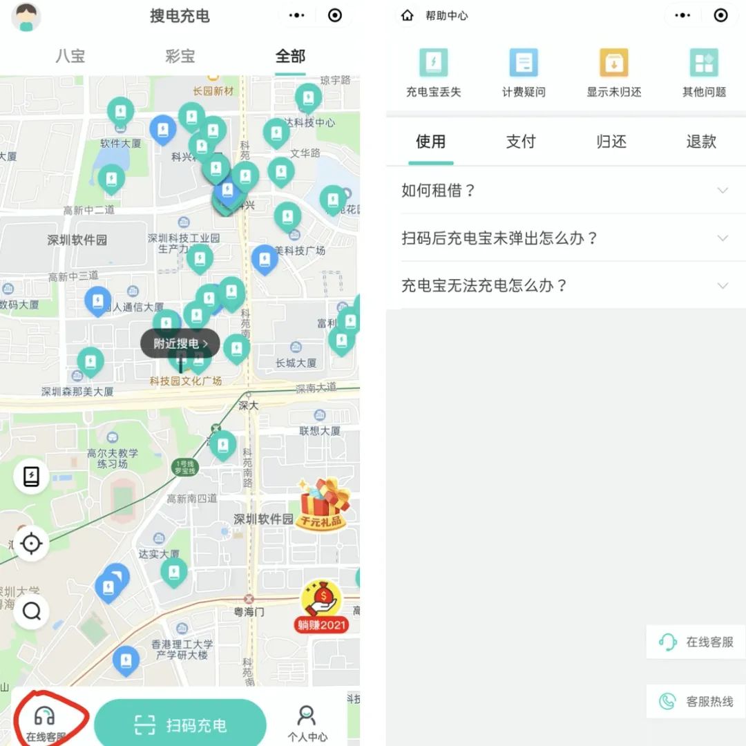 搜电接到的常见咨询问题包含招商加盟相关政策、充电宝租用和归还方式、设备故障反馈、费用问题咨询、建议和反馈等。前要面对合作商家、B端合伙人及合作商,后要面对C端用户咨询,客服人员在繁忙切换操作系统的过程中,不仅浪费时间,还可能造成消息遗漏。