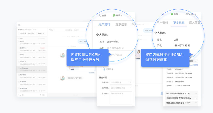 为此,兑吧为其大量企业客户提供了网易七鱼在线客服,其核心功能一体化工作台不仅能够支持客服同时接待在线+呼叫热线咨询,同时能够根据企业的个性化需求,并基于强大的集成能力与智能分配功能,打通企业CRM系统,辅助客服及时了解用户的会员信息、历史咨询记录以及工单记录、服务小记等,节省了大量时间;同时根据历史接待客服优先等分配规则,安排最优客服接待,快速解决客户的核心问题。