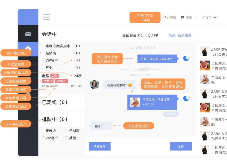 并且,当咨询请求发生于某个商品详情页面时,可自动将商品链接以卡片形式发送给客服,提前预判用户咨询问题,节省时间。