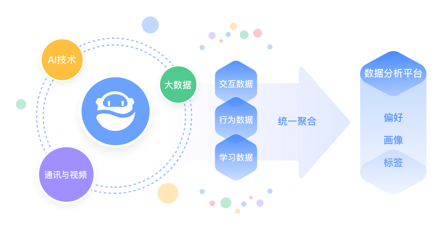 网易七鱼帮助企业建立以学员为唯一的偏好数据,横向围绕企业与学员交互触点,纵向场景覆盖线上互动IM、直播音视频、互动白板、行为轨迹、交互记录等。提供一整套的全场景通信+大数据分析平台建设,支撑精准推荐及精准营销,驱动数据化决策运营。