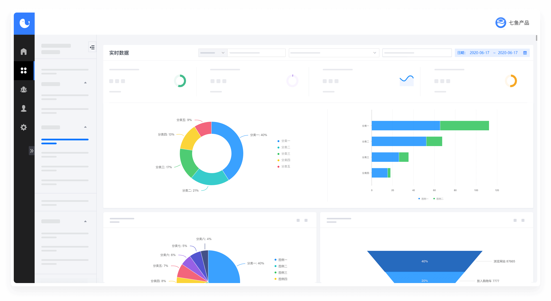 实时展示接听和通话的指标,直观展示客户意向等级、客户关注点、通话高峰时间段、客户跟进状态的分布图,简洁明了