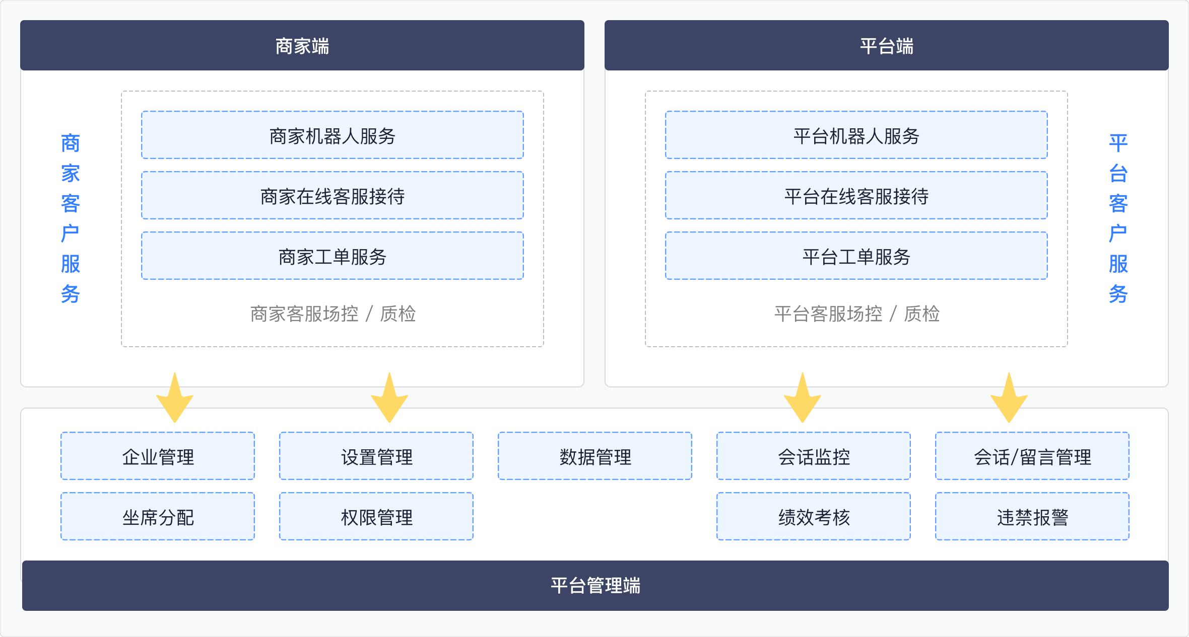 支持平台与商家工单双向流转,实现跨平台高效率的服务协作。