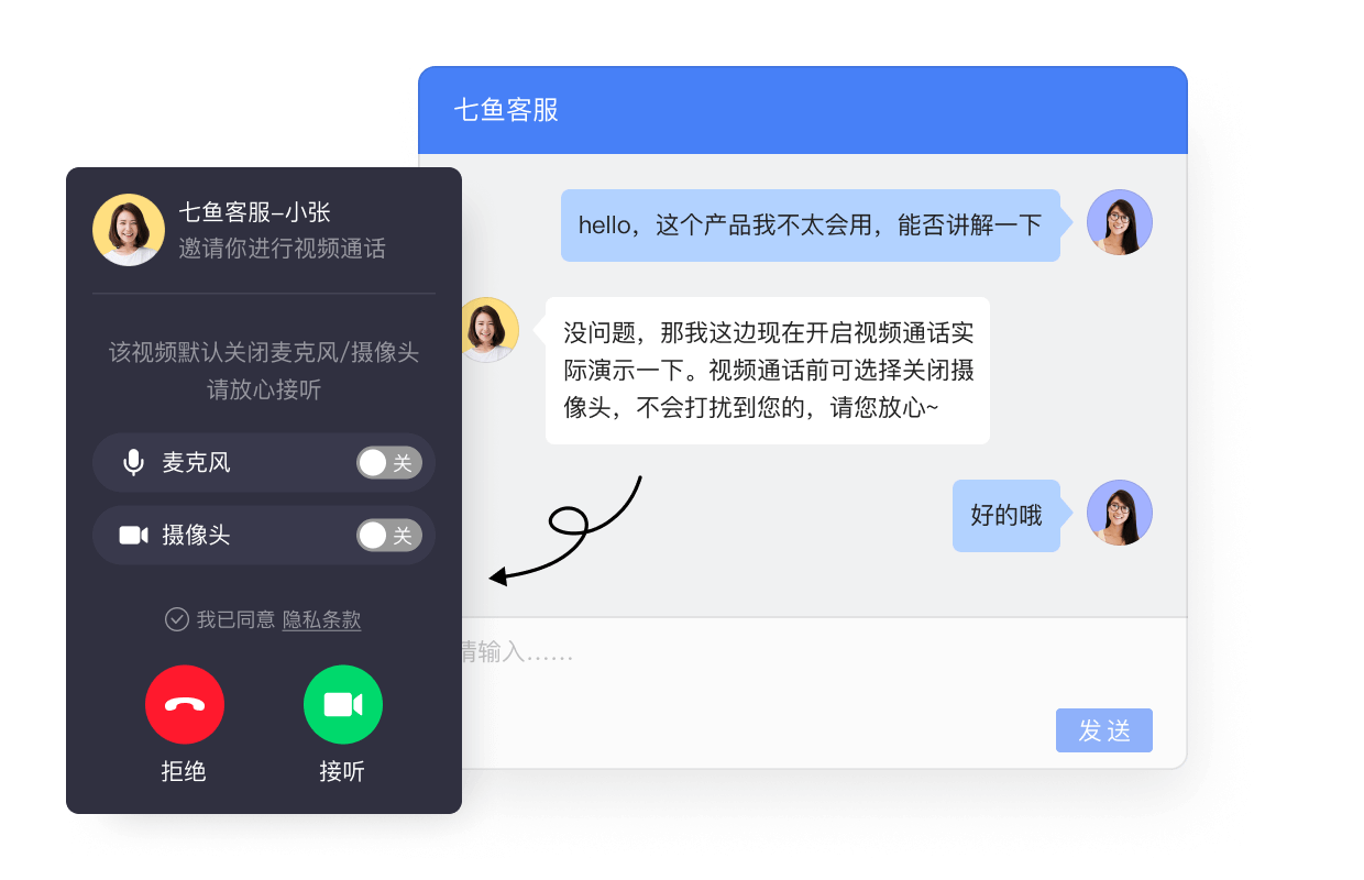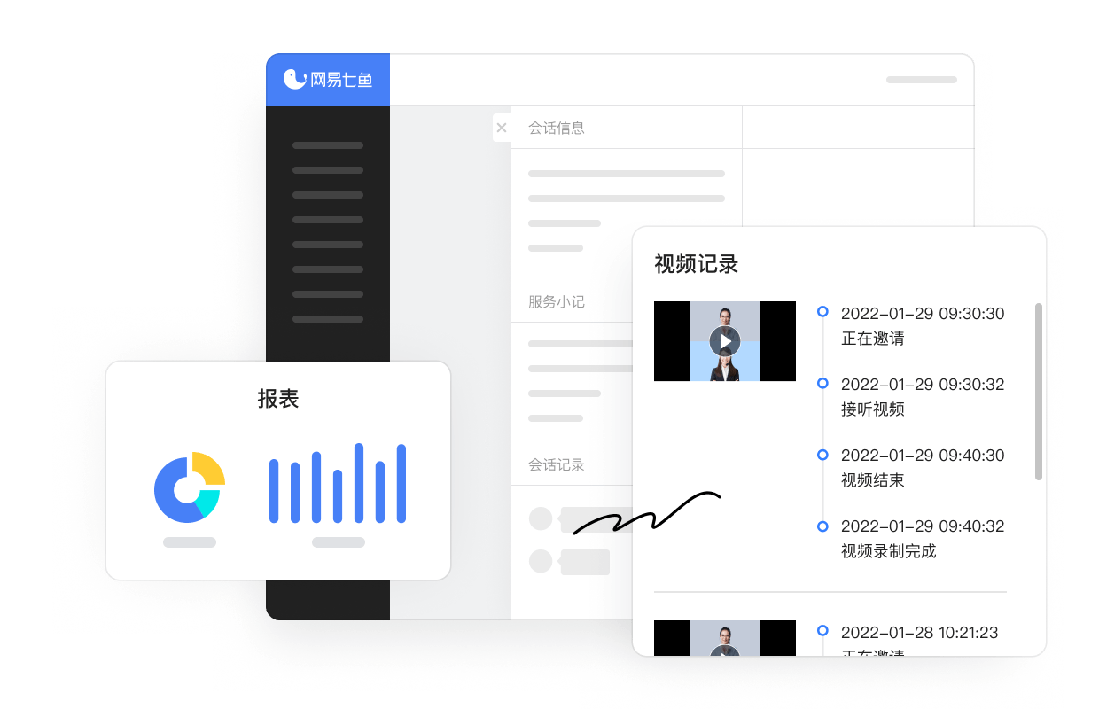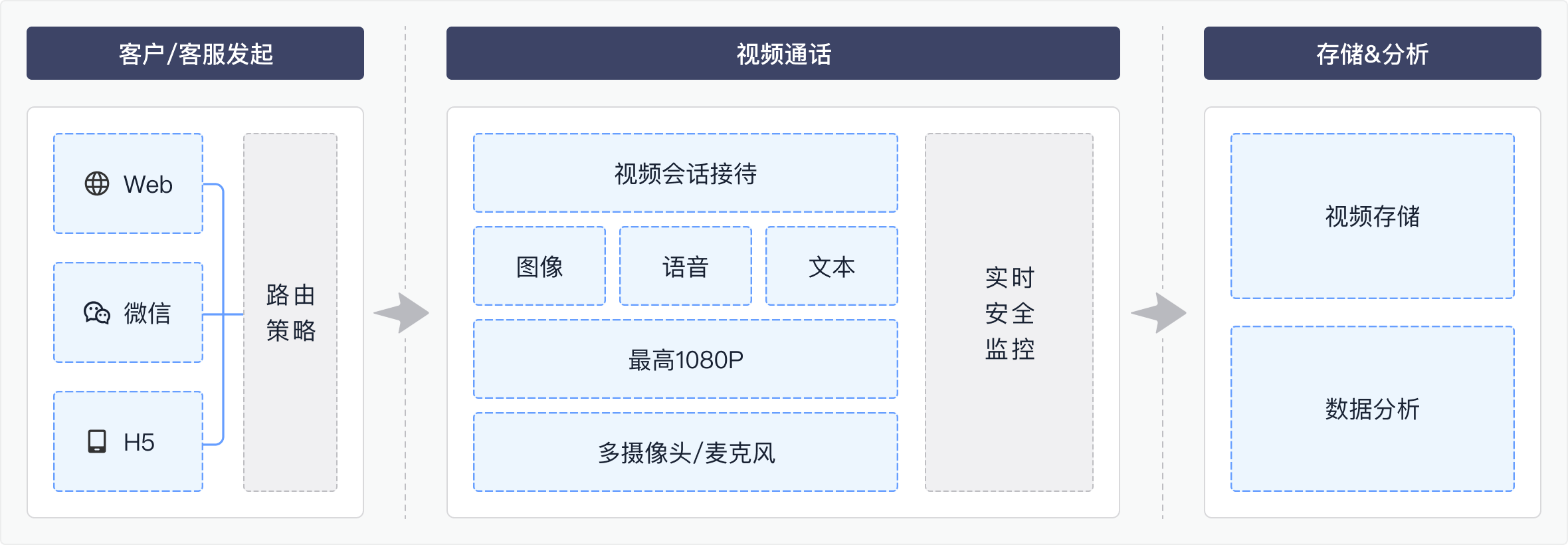 双向记录视频,默认提供3个月的免费存储,可同时查看通话邀请、接听结束的节点时间。