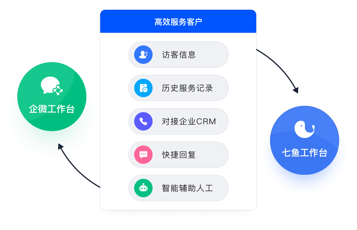 坐席可通过企微工作台+七鱼工作台,高效服务客户